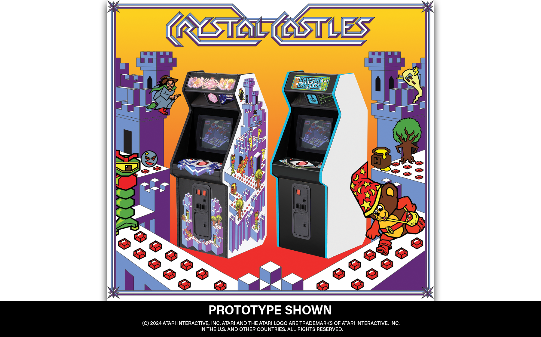 NWT in collaboration with Crystal Castles game designer Franz Lanzinger are proud to announce the Crystal Castles x RepliCade Field-Test Edition! This is a fully playable 1/6th scale replica of the Pre-Production Crystal Castles cab that was field tested in arcades before switching to the production cabinet art package. This limited-edition arcade machine has all the same standard Crystal Castles x RepliCade features but with faithfully reproduced preproduction cabinet artwork. Each cabinet is hand crafted to capture every possible detail including the preproduction single-coin slot coin door with modified Free Play Button, wood-grain side panels, blue t-molding, special LED lighting and more!