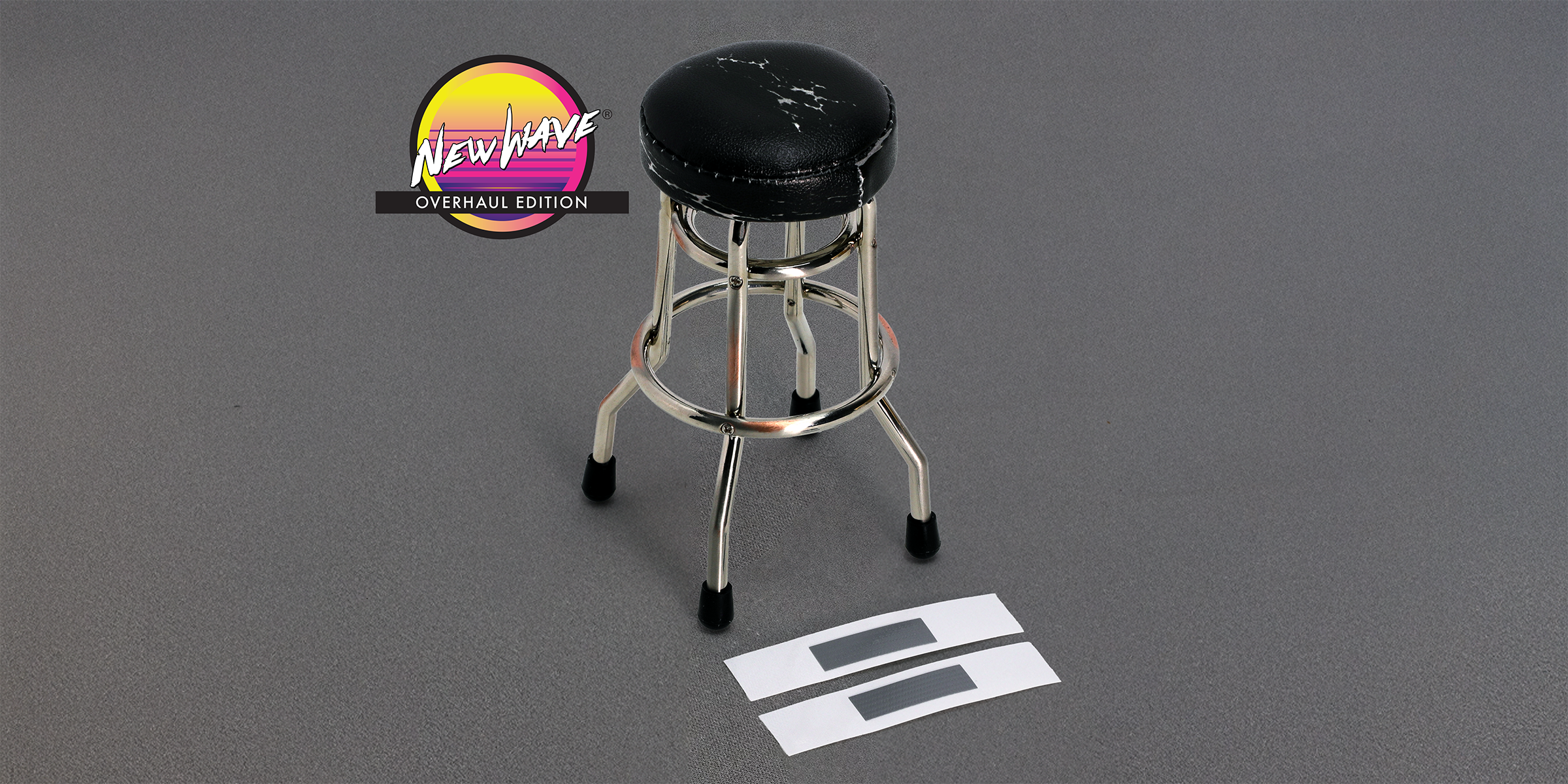 Overhaul Edition Replica Vintage Arcade Destruction Stool in 1/6th scale with Hand Applied Distressed Detailing on the Top Pad & Legs. Customizable with 2x strips of Mini Duct Tape!  Sturdy die-cast metal construction designed to provide excellent support for most sixth scale action figures.