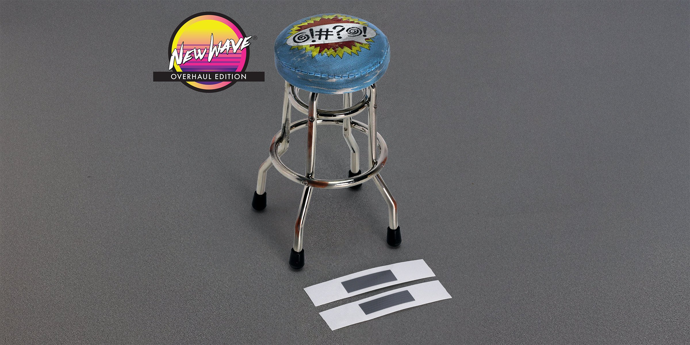 Overhaul Edition Replica Vintage Arcade Destruction Stool in 1/6th scale with Hand Applied Distressed Detailing on the Top Pad & Legs. Customizable with 2x strips of Mini Duct Tape! Sturdy die-cast metal construction designed to provide excellent support for most sixth scale action figures.